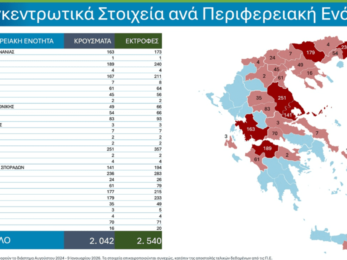 Το Υπουργείο Αγροτικής Ανάπτυξης και Τροφίμων και η Εθνική Επιστημονική Επιτροπή Διαχείρισης και Ελέγχου της ευλογιάς των αιγοπροβάτων δίνουν σήμερα στη δημοσιότητα επικαιροποιημένα συγκεντρωτικά στοιχεία για την πορεία της νόσου στη χώρα, όπως προκύπτουν από τα δεδομένα των Κτηνιατρικών Υπηρεσιών.