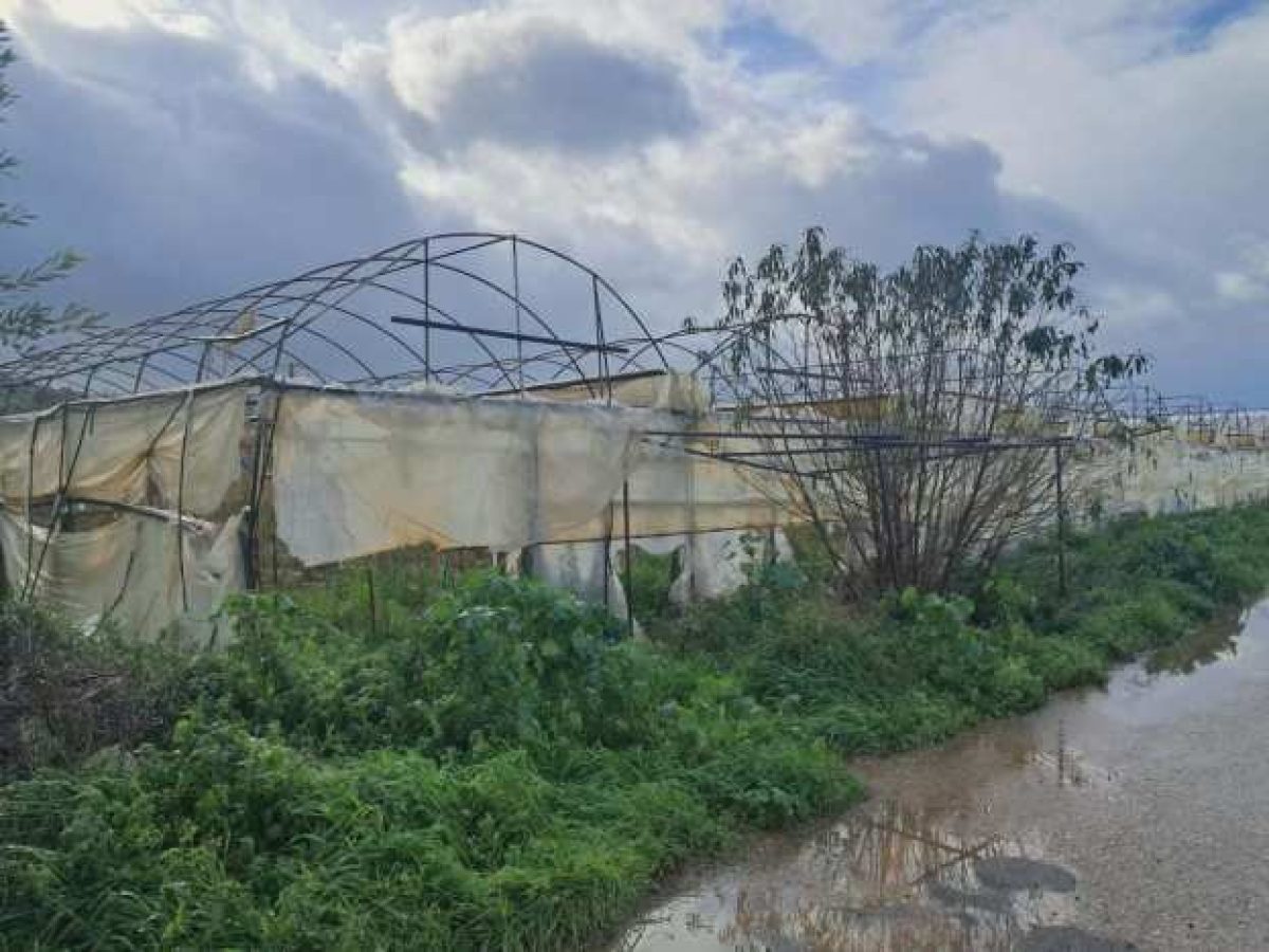 Ο ανεμοστρόβιλος που χτύπησε την περιοχή την πριν λίγες ημέρες, άφησε πίσω του σοβαρές ζημιές σε εγκαταστάσεις και την παραγωγή, η οποία σε πολλές περιπτώσεις καταστράφηκε ολοσχερώς.
