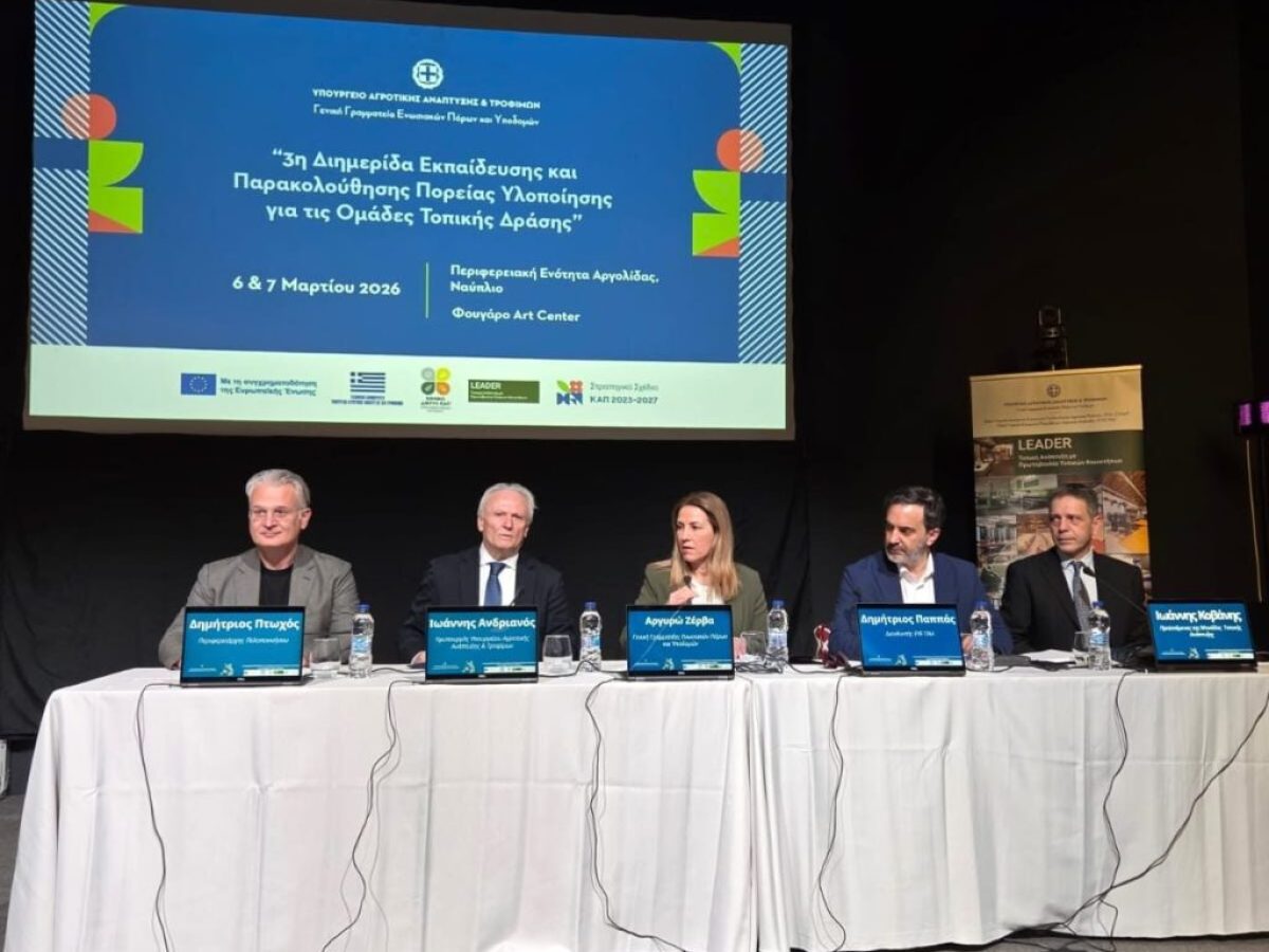 Με επιτυχία πραγματοποιήθηκε στο Ναύπλιο, στις 6 και 7 Μαρτίου 2026, η 3η Διημερίδα Εκπαίδευσης και Παρακολούθησης Πορείας Υλοποίησης για τις Ομάδες Τοπικής Δράσης, που διοργάνωσε η Γενική Γραμματεία Ενωσιακών Πόρων και Υποδομών του Υπουργείου Αγροτικής Ανάπτυξης και Τροφίμων με τη συμβολή του Εθνικού Δικτύου ΚΑΠ.