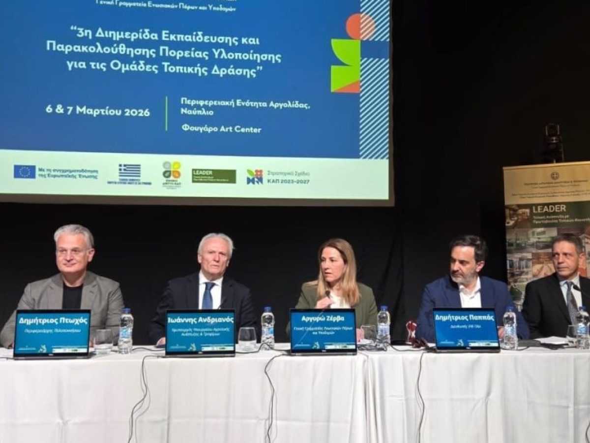 H πορεία υλοποίησης των τοπικών στρατηγικών και οι απαιτήσεις εφαρμογής των παρεμβάσεων LEADER στο Στρατηγικό Σχέδιο της ΚΑΠ 2023–2027, παρουσιάστηκε κατά τη διάρκεια των εργασιών της 3ης Διημερίδας Εκπαίδευσης και Παρακολούθησης Πορείας Υλοποίησης για τις Ομάδες Τοπικής Δράσης, που διοργάνωσε πρόσφατα στο Ναύπλιο (6 και 7 Μαρτίου) η Γενική Γραμματεία Ενωσιακών Πόρων και Υποδομών του ΥΠΑΑΤ, με τη συμβολή του Εθνικού Δικτύου ΚΑΠ.