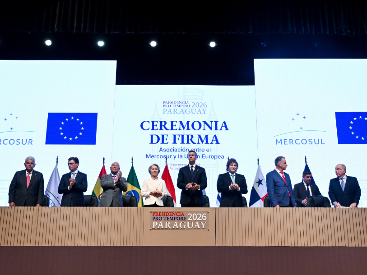 Η Πρόεδρος της Ευρωπαϊκής Επιτροπής, Ursula von der Leyen, ο Πρόεδρος του Ευρωπαϊκού Συμβουλίου, Antonio Costa, και ηγέτες από τις χώρες του Mercosur παρευρέθηκαν στην υπογραφή της συμφωνίας εταιρικής σχέσης ΕΕ-Mercosur (EMPA) και της προσωρινής εμπορικής συμφωνίας ΕΕ-Mercosur από τον Επίτροπο Εμπορίου της ΕΕ, Maroš Šefčovič, και τους ομολόγους του από τη Mercosur.